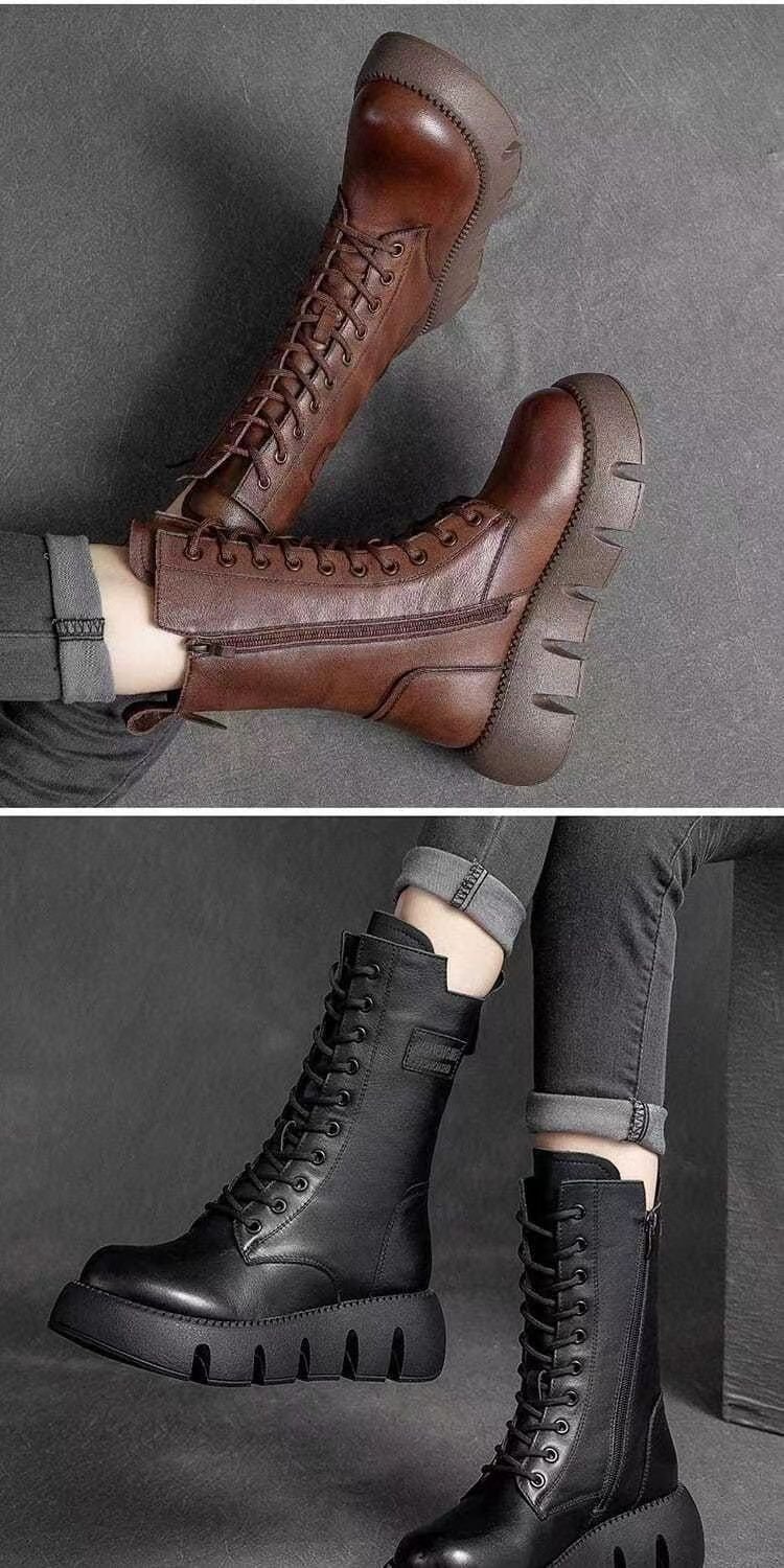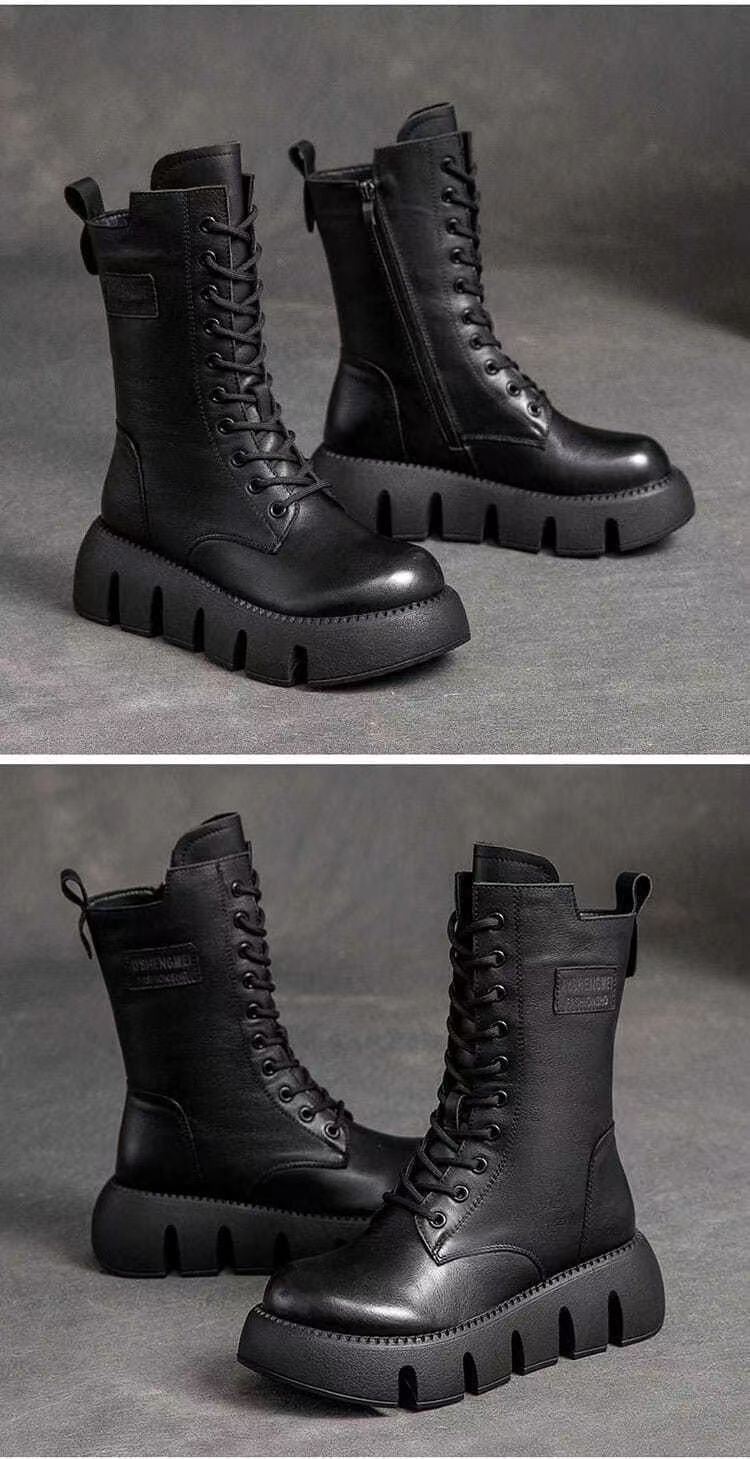 【2024 New】Cizme din bumbac cu șireturi, înalte, cu talpă groasă