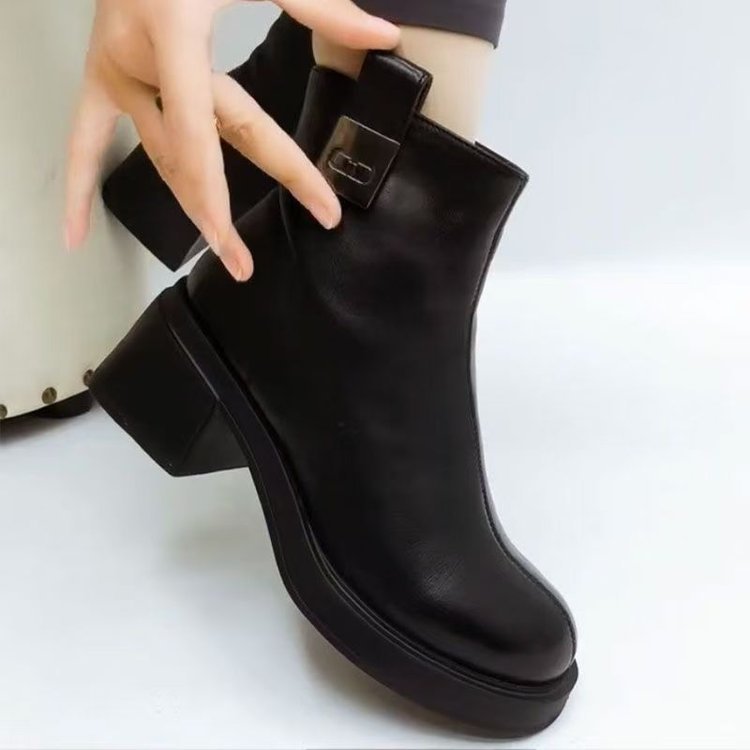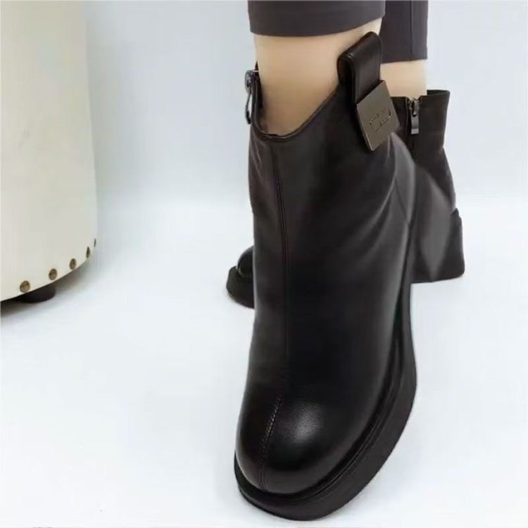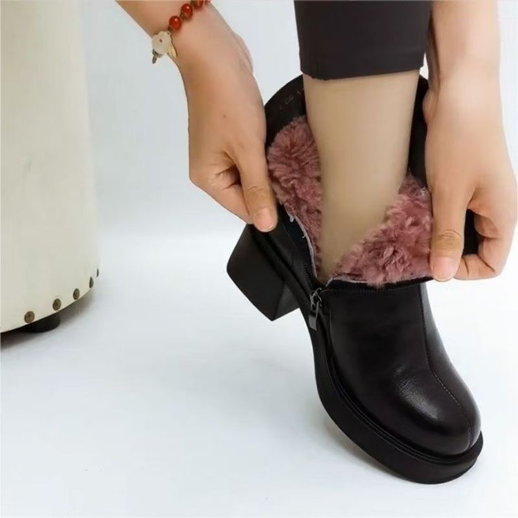 【2024 Nou】Pantofi din bumbac gros din piele naturală cu toc gros