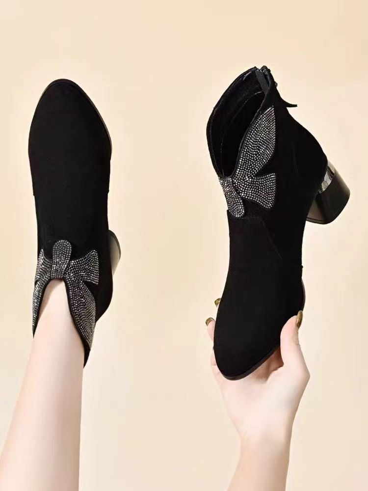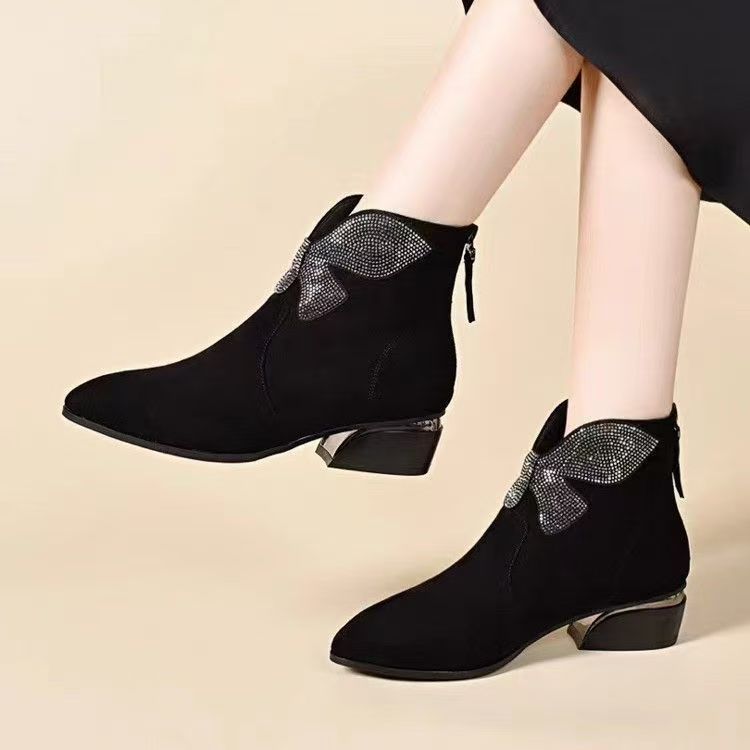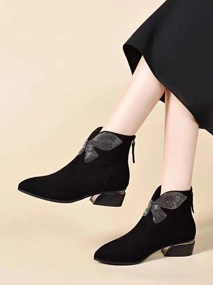 【2025 Nou】Cizme de iarnă din piele mată cu toc bloc ascuțit